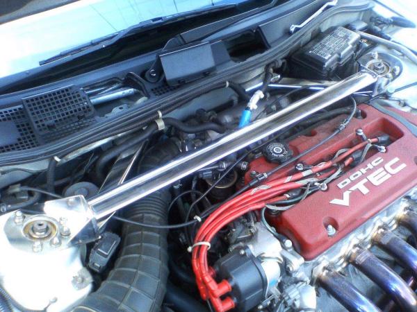 タワーバーの構造上(取り付けられるボルトは全て使用してぎりぎりのクリアランスで作っていますので)サスを外さないと取付できませんよと返事をしたら、某ショップのではアライメントが狂うからサスは外さないとの事・・・・(めんどいからじゃ無いのか??おいおい)